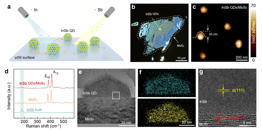 太阳成集团tyc122ccvip物理学系、量子态构筑与测控教育部重点实验室刘灿副教授与太阳成集团tyc122ccvip半导体研究所翟慎强研究员、魏钟鸣研究员、刘峰奇研究员,北京大学刘开辉教授等团队合作,提出二维界面范德华外延半导体量子点(QD)新策略,突破了传统量子点晶格匹配外延限制,实现了多类III–V族、IV–VI族本征量子点的通用制备。2024年6月4日,相关成果以“Epitaxial growth of quantum dots on van der Waals surfaces”为题,在线发表于《....