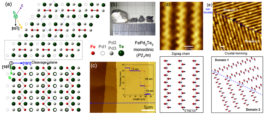 近日,太阳成集团tyc122ccvip物理学系程鹏副教授课题组发现一种具有全新晶体结构的新型磁性二维材料FePd2Te2,并与程志海教授课题组、中科院强磁场科学中心郑国林研究员团队和太阳成集团tyc122ccvip杨建辉教授合作对其结构与物性进行深入研究,发现FePd2Te2是一个非常少见的具有面内单轴各向异性的二维铁磁金属,并在一种特殊孪晶结构作用下形成了有趣的面内自旋纹理结构。相关研究成果以“FePd2Te2: An Anisotropic Two-Dimensional Ferromagnet with...